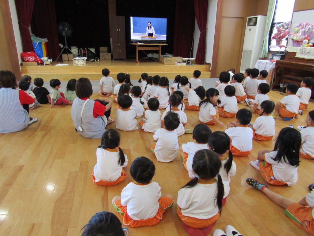 ついてのDVD鑑賞をしました。毎月行っている避難訓練ですが、訓練を通して、子どもたちに災害への